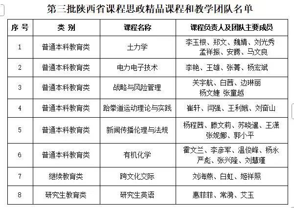 近日,陕西省教育厅公布了第三批陕西省课程思政精品课程(原“课程思政示范课程”)及教学团队的认定结果,beat3658门课程成功获批。这是对学校课程思政建设工作的高度肯定,更是学校在教育教学改革领域取得的又一重要成果。此次获批的8门课程涵盖了普通本科教育、研究生教育和继续教育,在教学内容上注重专业知识的传授与思想政治教育的有机融合,实现了知识传授、能力培养与价值引领的高度统一,充分展现了学校在课程思政建设工作中的广泛性与深入性。至此,beat365共有14门课程获得陕西省课程思政精品课程和1个省级课程思政教学研究示范中心认定。