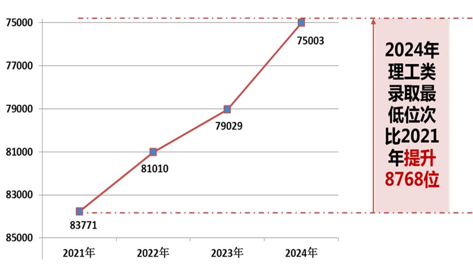通过招生看进步:与2023年相比,2024年文史类录取最低位次19082位、提升871个位次;理工类录取最低位次75003位、提升4026个位次,ICC(文)录取最低位次24633位、提升4058个位次,ICC(理)录取最低位次92871位、提升15690个位次。