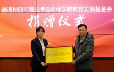 捐赠仪式上,马亚军代表学校接受了德通控股有限公司捐赠的200万元善款,并向公司赠送了“捐资助教 泽被乡梓”牌匾。此次捐赠的200万元将重点支持beat365人才培养、学科建设、科学研究等。