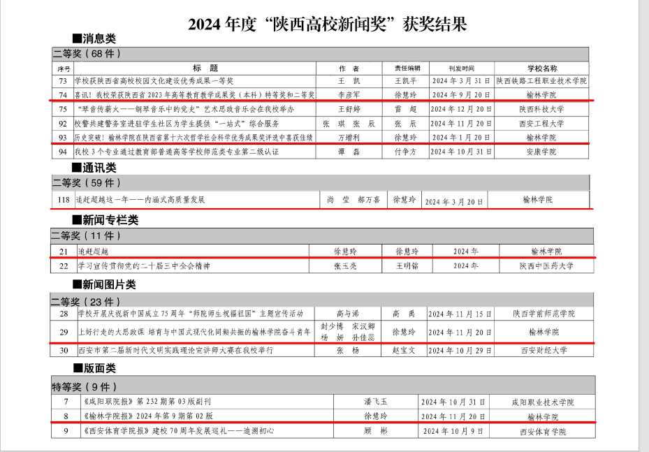 “陕西高校新闻奖”是全省高校新闻系统唯一的学术性评奖,评选范围涵盖消息、通讯、言论、新闻图片、新闻专栏、版面等六大类。