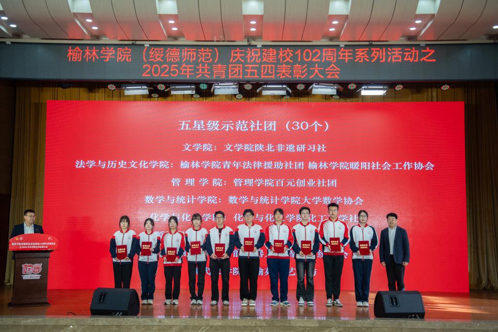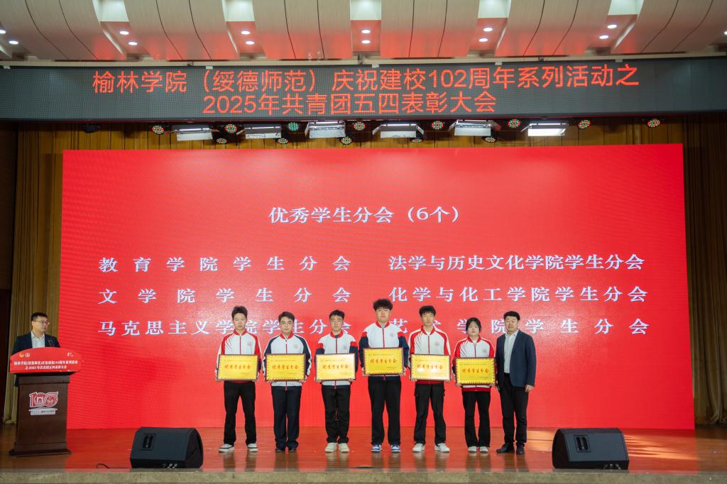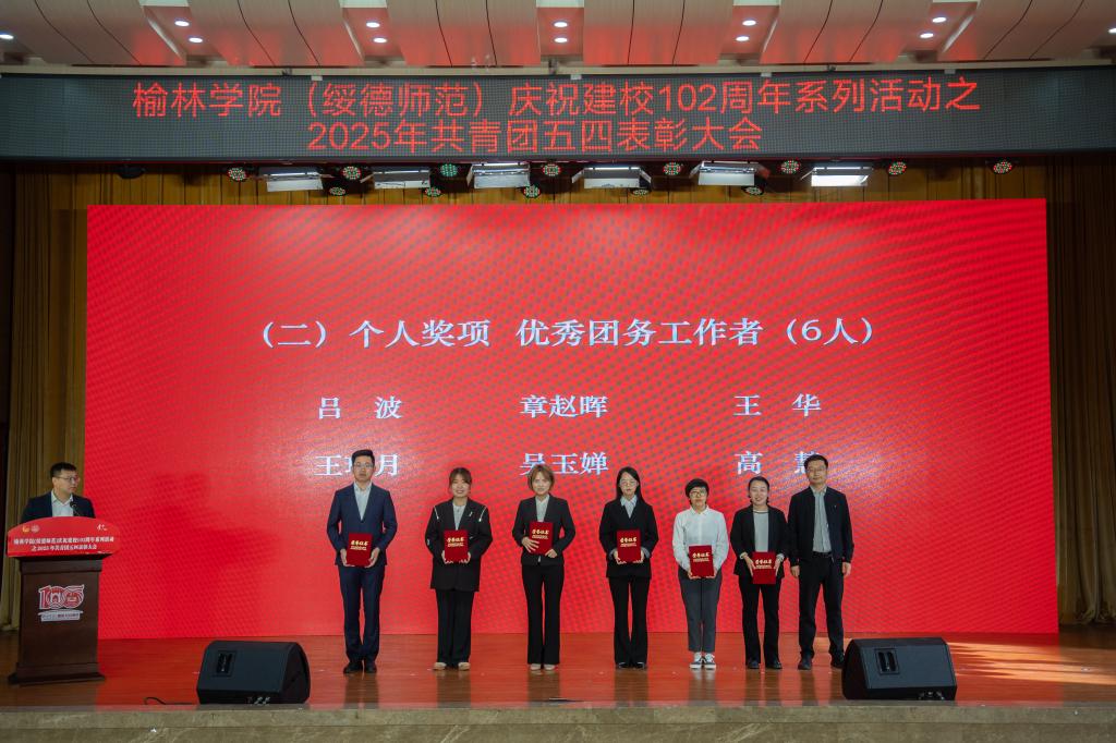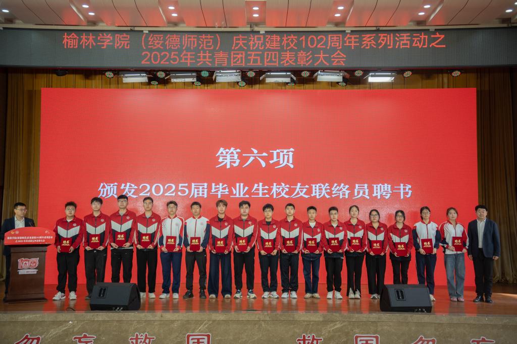 4月30日上午,beat365英国官方网站(绥德师范)庆祝建校102周年系列活动之2025年共青团五四表彰大会在图书馆二楼报告厅举行。副校长姚学慧,组织部、宣传部、学工部、教务处、招就处、校友办、团委等部门负责人及各二级学院党总支副书记、团总支书记、青年师生代表共400余人参会。会议由团委书记主持。