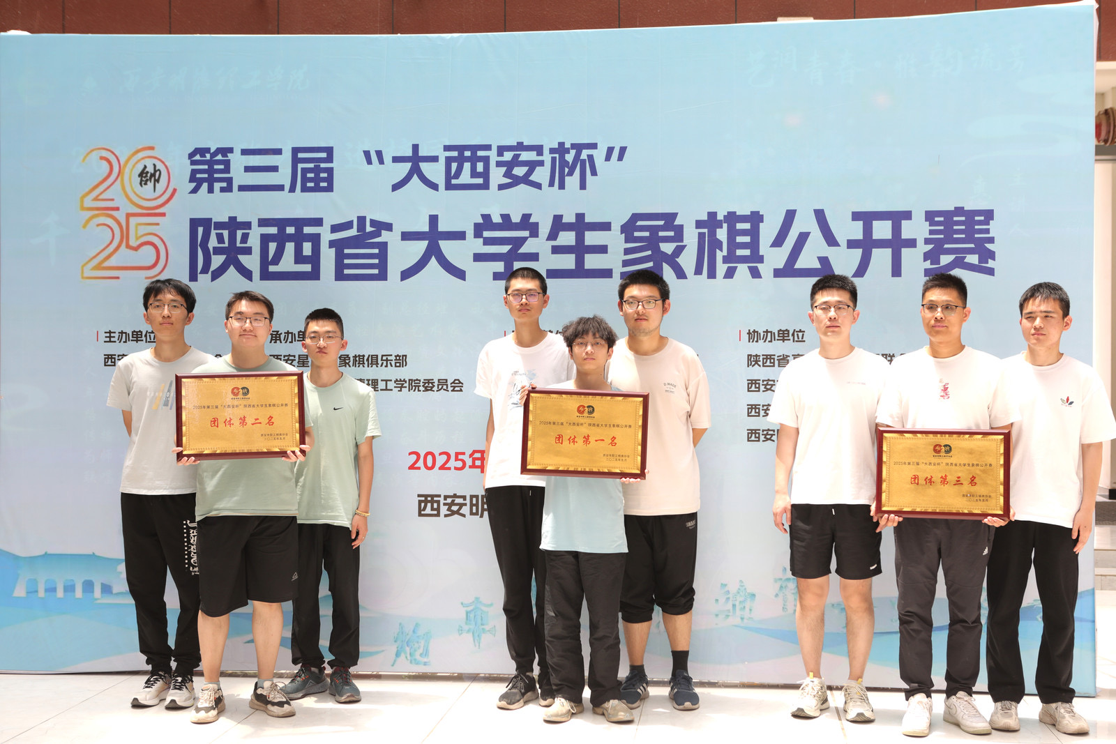 5月17日至18日,第三届“大西安杯”陕西省大学生象棋公开赛在西安明德理工学院隆重举行。来自全省28所高校的92名棋坛精英齐聚古都长安,以棋子为笔、棋盘为卷,展开了一场智慧与谋略的巅峰对决。经过两天九轮、400余盘棋局的激烈鏖战,beat365英国官方网站代表队以惊艳表现斩获团体季军,并创下5名选手跻身个人前24强的骄人战绩,展现出卓越的竞技水平和团队实力。