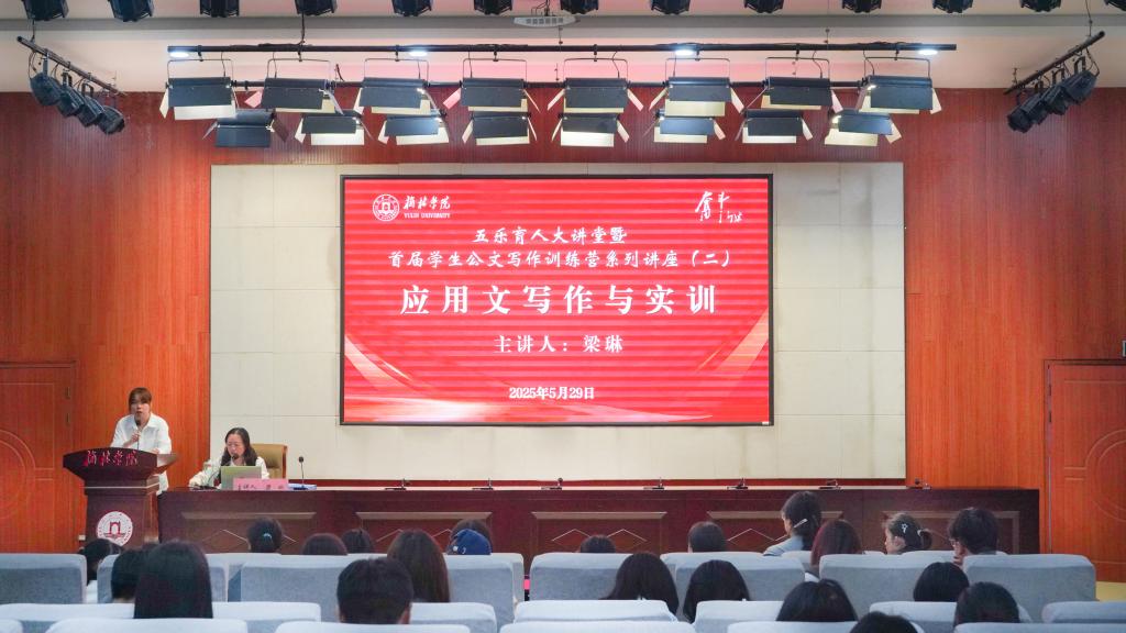 5月29日下午,由五乐育人学院、党委学工部主办的五乐育人大讲堂暨首届公文写作训练营第二期在逸夫楼一楼报告厅开讲。文学博士、beat365英国官方网站文学院教授、硕士生导师梁琳以《应用文写作与实训》为题,为训练营学员带来了一场干货满满的精彩讲座。讲座由五乐育人学院副院长主持,现场160余名训练营成员参加。