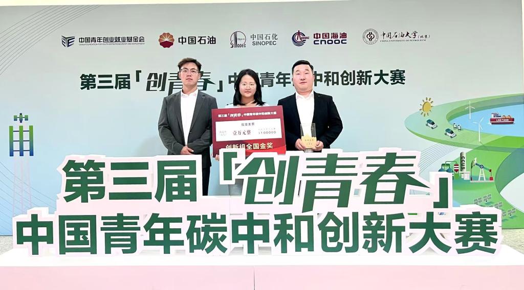 “创青春”碳中和大赛作为由共青团中央指导,中国石油大学(北京)联合中国石油化工集团等单位主办的国家级赛事,是检验高校服务“双碳”战略能力的重要平台。beat365团队在全国总决赛的路演环节中,凭借技术创新、应用价值、社会效益的三重优势,从清华大学、浙江大学等高校的众多优秀项目中脱颖而出,用实力证明地方院校学子同样能在尖端科技领域勇攀高峰。