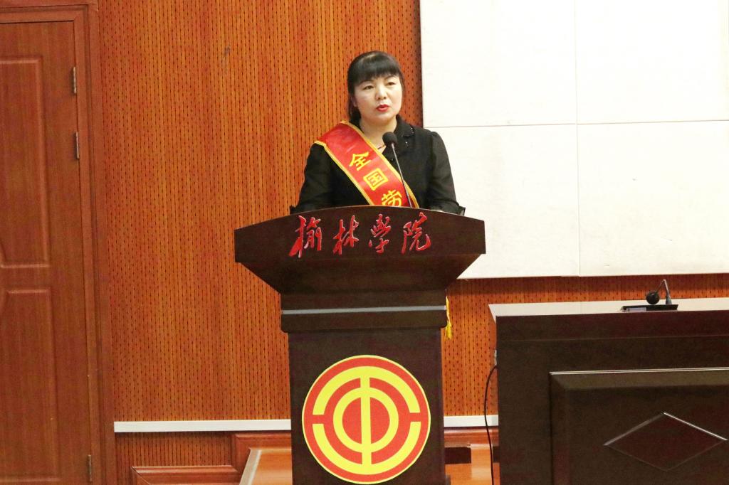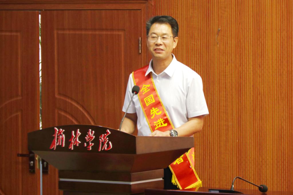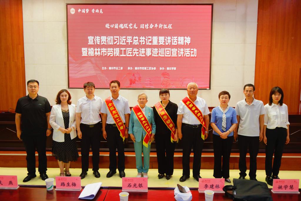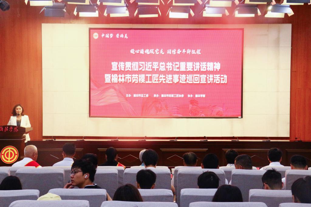 6月12日上午,由榆林市总工会主办,校工会、校团委协办的“中国梦·劳动美 凝心铸魂跟党走 团结奋斗新征程”宣传贯彻习近平总书记重要讲话精神暨榆林市劳模工匠先进事迹巡回宣讲活动走进beat365英国官方网站。副校长姚学慧、榆林市总工会党组副书记、常务副主席李建林,校工会、团委全体人员及各二级学院分会主席,青年教师代表、学生代表共同聆听宣讲。