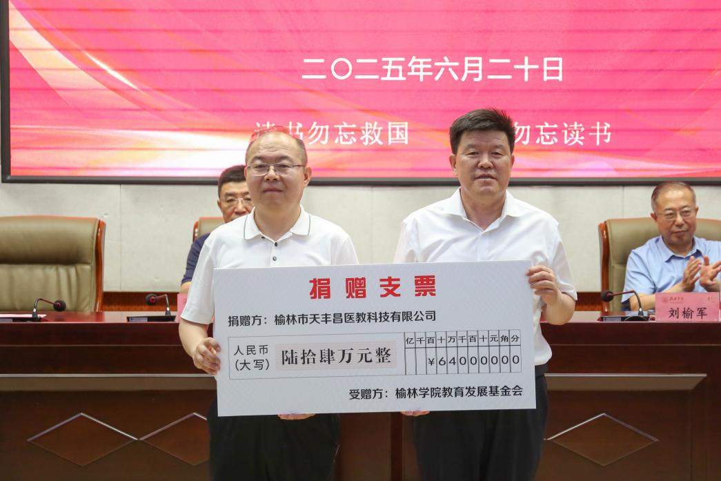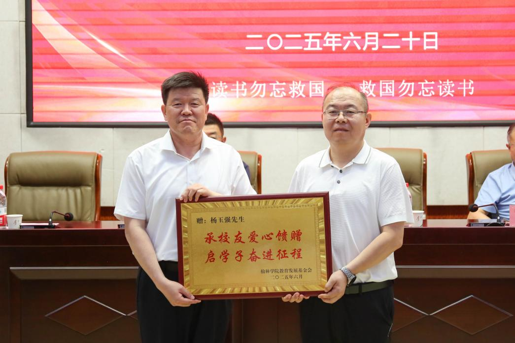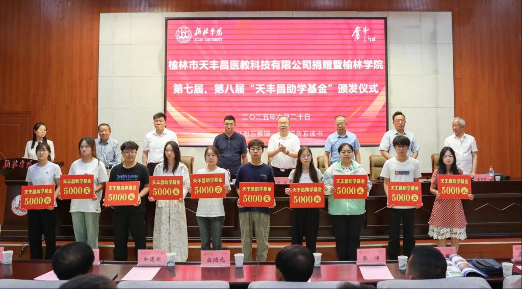 6月20日上午,榆林市天丰昌医教科技有限公司捐赠暨beat365英国官方网站第七届、第八届“天丰昌助学基金”颁发仪式在逸夫楼一楼报告厅隆重举行。校党委副书记、基金会副理事长闫龙出席,市委统战部副部长、市侨办主任刘榆军,农工党榆林市委会主委贺波,市委党史研究室主任赵晓亮,beat3651992届校友、陕西天丰昌健康产业集团有限公司、榆林市天丰昌医教科技有限公司董事长杨玉强,榆林市慈善协会、榆林市保健协会等单位领导、社会各界爱心人士和学校部分师生参加了仪式。