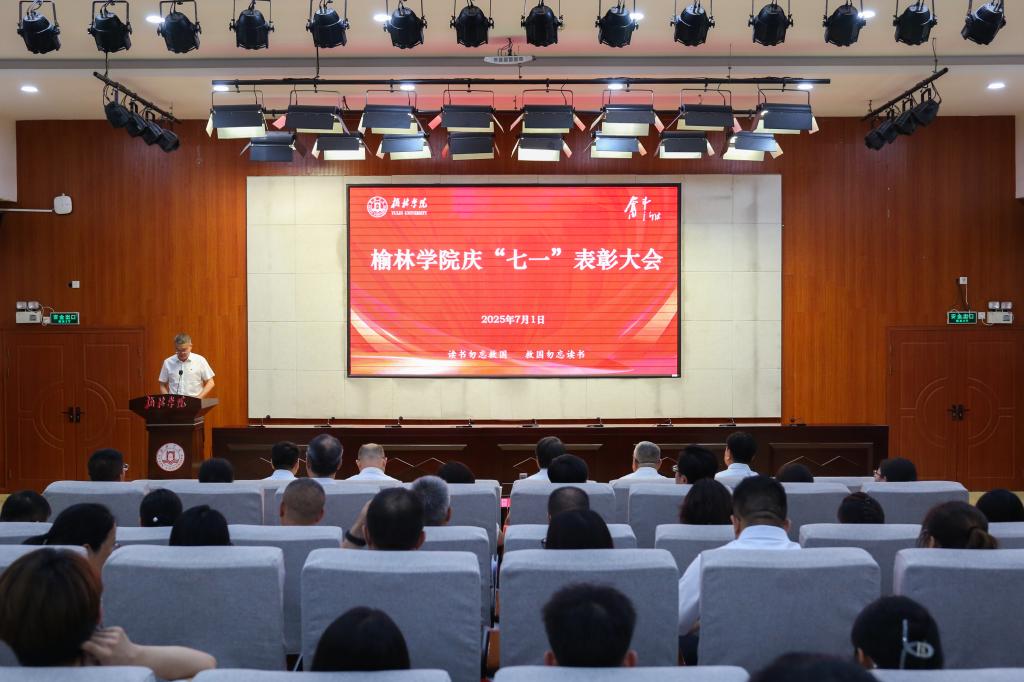 表彰先锋树标杆。闫龙宣读表彰决定,校领导分别为先进基层党组织、优秀共产党员、优秀党务工作者和优秀思政工作者颁奖。先进基层党组织书记代表屈雷、优秀教工党员代表李晓焱、优秀党务工作者代表延江波及优秀学生党员代表夏文艺先后发言。屈雷指出,作为高校最基层的一级组织,党支部始终坚持扎根榆林、立德树人,坚持科研引导助发展、专业辅导促成才,持续推进“五乐育人”工程。李晓焱表示,作为党员教师要以学术的态度研究教学,以专业的态度开展教学,以创新的态度突破教学,以育人的态度深耕教学,努力奋斗站稳讲台,站好讲台,站活讲台,用实际行动诠释共产党员的责任担当,以全部力量践行追赶超越的使命担当。延江波认为,要打造“叫得响”的党建品牌,让思政教育可触可感;要推行“贴得近”的暖心举措,让服务学生有情有义;要锤炼“靠得住”的骨干队伍,让育人工作可担可当。夏文艺觉得,作为新时代的青年党员肩负着双重使命,既要潜心钻研夯实专业基础,更要胸怀“国之大者”心系民族未来。