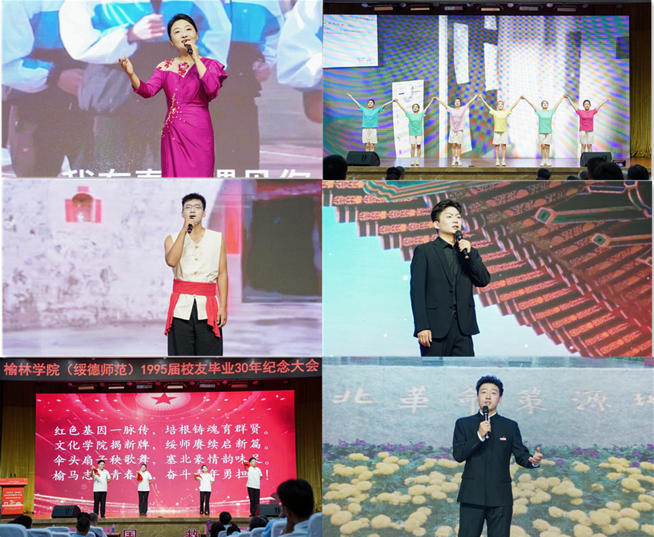 张新柱为李继军、温斐等12位校友赠送了承载着青春记忆和美好愿望的毕业30年校友返校活动纪念册。杨成、白春丽等9位校友为贺智利、张春燕等时任教师敬献了鲜花,芬芳传递着校友对恩师的诚挚敬意和深深祝福。大会最后,学校师生表演了歌曲《我在春天遇见你》、舞蹈《同桌的你》、陕北民歌《小桃红》等文艺节目,以激昂旋律展现“奋斗”精神,传递共同愿景,彰显了beat365英国官方网站五乐育人的成效和家国情怀的担当。