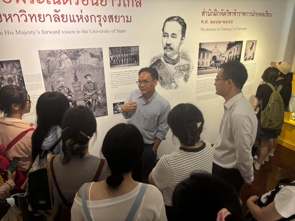 在朱拉隆功大学访问期间,校园内和谐共生的自然与人文景观给师生留下了深刻印象。在Patet Tummaruk教授的带领下,师生们参观了学校的展览馆和艺术作品馆,沉浸式感受了泰国丰富的文化艺术底蕴和独特的教育氛围。