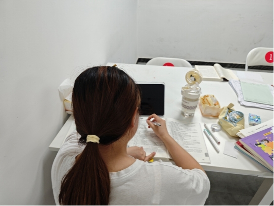 马克思主义学院教育专业同宿舍的四位女生,组成了考研路上的“并肩战友”。每天6点半起床,晚上10点离开图书馆,已经成了她们暑期的常态。刘艺璇说:“我们每个人都有自己的复习规划和时间管理方法,在自己的赛道上奋力奔跑。不过我们也有颓废丧气的时候,这时候王晓梦的一句‘坚持到底’,总能换来我们会心的微笑与力量。”在这片方寸之地,个体的汗水早已汇流,共同浇灌着“更上一层楼”的梦想。她们用行动证明:考研路上,最好的陪伴是同窗,最强的后盾是彼此。
