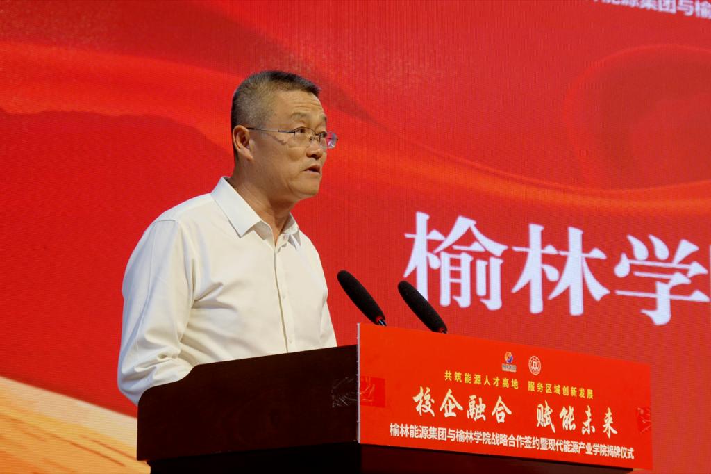 张新柱在致辞中指出,此次战略合作签约暨现代能源产业学院揭牌意义重大,凝聚着双方服务国家能源战略的赤诚之心,标志着榆林能源集团与beat365英国官方网站携手共进迈入崭新阶段。签约与揭牌,绝非仅是一纸协议、一块牌匾,而是向未来发出的宣言书与动员令。他提出三点期望:一是相向而行,携手支撑能源化工转型升级。双方应围绕能源化工产业发展的关键领域,共同开展科研项目,集中优势力量攻克行业“卡脖子”技术难题。联合建立科研攻关小组,定期研讨技术难题解决方案,加速科研成果转化。推动能源化工产业向绿色、低碳、智能方向发展,促进产业提质增效,提升产业核心竞争力,为能源化工行业转型升级注入强大动力。二是双向奔赴,协同培养新时代应用型人才。通过共建现代能源产业学院,创新人才培养模式,实现人才培养与企业需求无缝对接。共同制定相关专业培养方案,依据企业实际需求优化课程体系,联合开发紧贴产业前沿的实践课程与教材,建设高水平联合实验室、技术中心等创新平台,为学生提供实践锻炼机会,培养适应现代能源产业发展的高素质应用型人才。三是相互激荡,共同进步贡献中国式现代化。此次合作是对国家相关政策要求的积极响应,双方要以党建赋能产业链,驱动产学研深度融合。充分发挥各自优势,实现资源共享、优势互补,在合作中各美其美、美美与共。为榆林及国家的能源发展和经济建设贡献力量,共同推动中国式现代化建设。