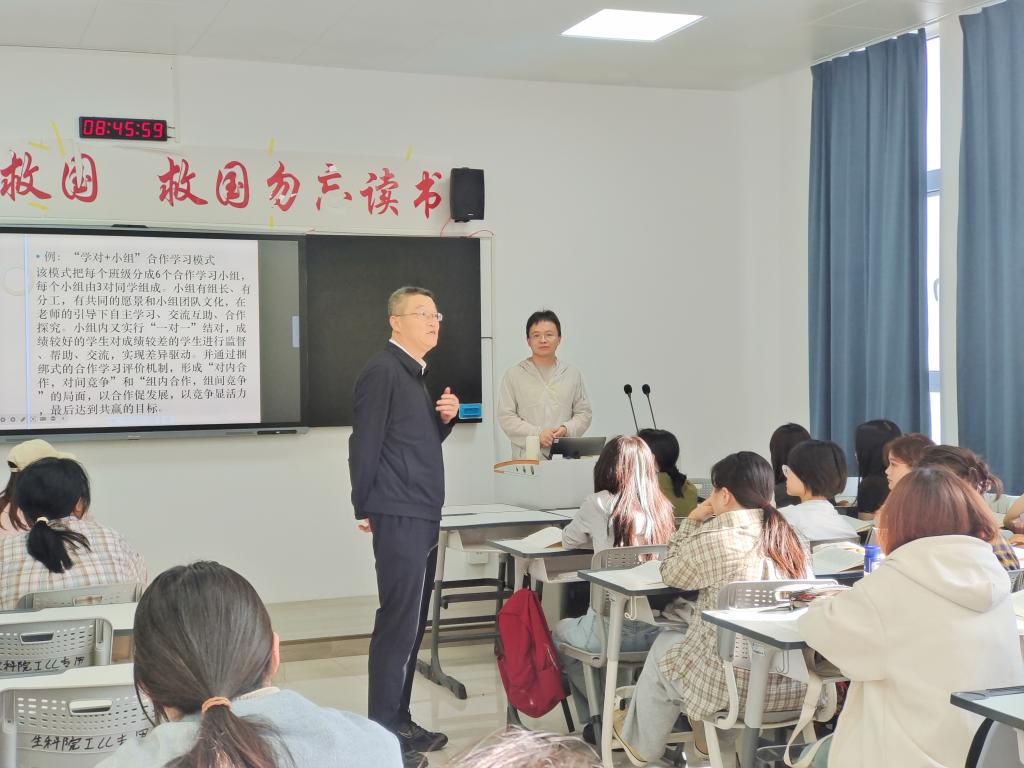 其他校领导也分别深入教学一线,党委副书记闫龙听取了张建华老师的《写作》等课程,党委副书记马亚军听取了毕伟伟老师的《植物产品加工与利用》等课程,副校长姚学慧听取了万鹏飞老师的《数学分析》等课程。各教学相关职能部门负责人分别听课,并在课后与师生就教学内容、方法改革等方面进行了交流探讨。