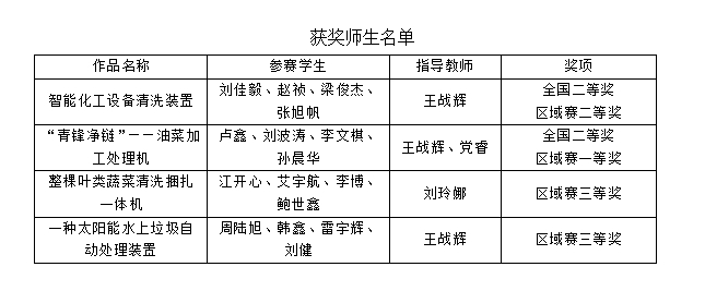 近日,由中国机械工程学会主办的中国大学生机械工程创新创意大赛暨第十六届过程装备实践与创新赛全国总决赛在武汉落下帷幕,在本届赛事中,beat365学子在全国总决赛中获得二等奖2项,在西北赛区赛事中获得一等奖1项、二等奖1项,三等奖2项。