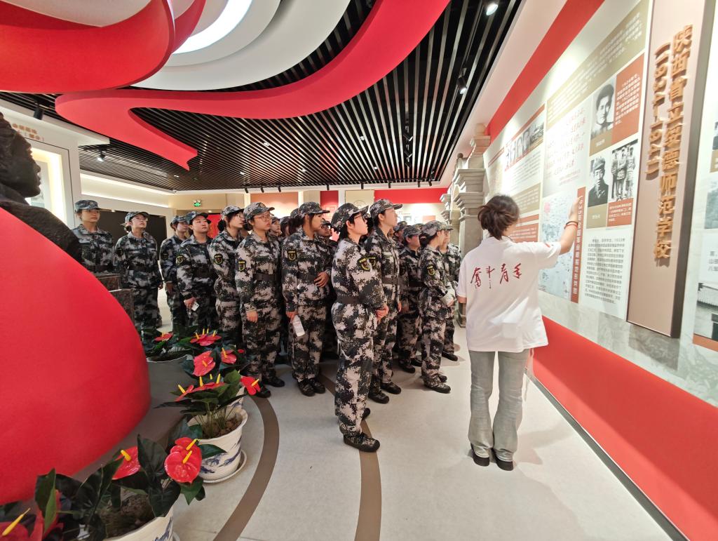 参观过程中,新生们认真聆听,不时在展柜前驻足凝视。教案、不同时代的校徽、获奖证书、教师专著等展品,特别是丰富的红色校史资料,让同学们真切感受到学校深厚的红色根脉和“读书勿忘救国,救国勿忘读书”的校训精神。