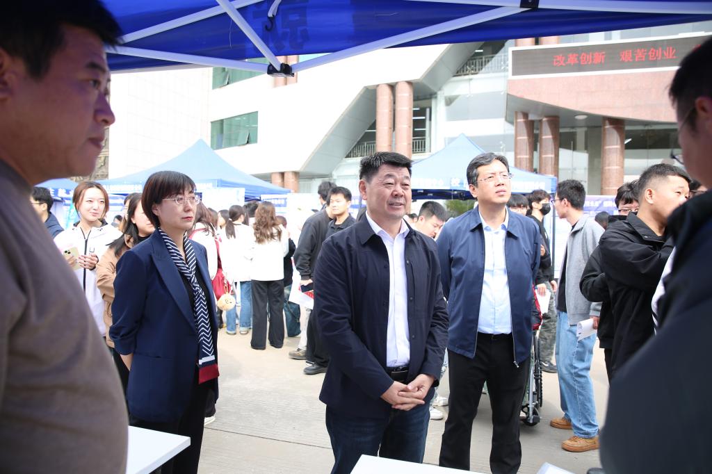 招聘会期间,beat365英国官方网站副校长姚学慧、榆林市公共就业和人才服务中心副主任苏文等领导深入会场调研指导,先后走进能源环保、化工、人工智能等重点领域企业展位,与企业负责人亲切交流,详细询问岗位需求、招聘标准及薪资福利等情况,倾听企业对高校人才培养的意见建议;同时与求职毕业生面对面沟通,了解其职业规划、岗位意向及求职困惑,鼓励大家结合专业优势积极投递简历。