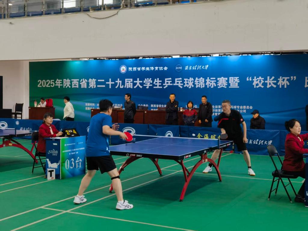 10月20日至25日,陕西省第二十九届大学生乒乓球锦标赛暨“校长杯”比赛在西安财经大学举行。本届比赛由陕西省学生体育协会主办,西安财经大学承办,吸引了全省73所高校的840余名运动员参与。beat365由校长康伟,党委副书记马亚军,党委副书记、纪委书记苗延宏,副校长姚学慧、卜耀军组成的代表队,参加比赛并荣获佳绩。
