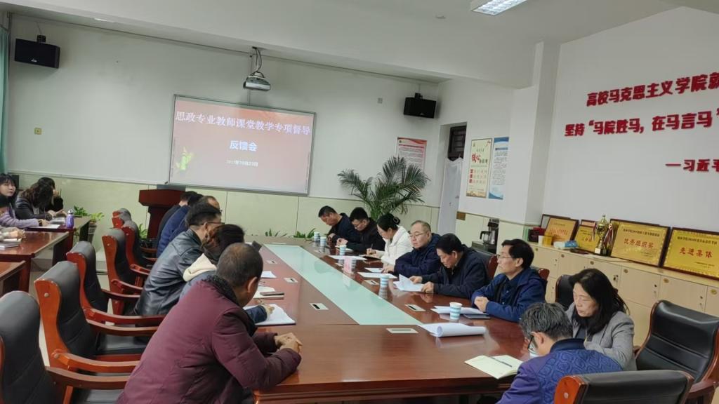 10月23日,思政专业教师课堂教学专项督导反馈会在六号教学楼6406会议室举行,党委副书记闫龙出席,教务处、质评办相关负责人以及课堂教学专项督导专家和马克思主义全体教师参加会议。