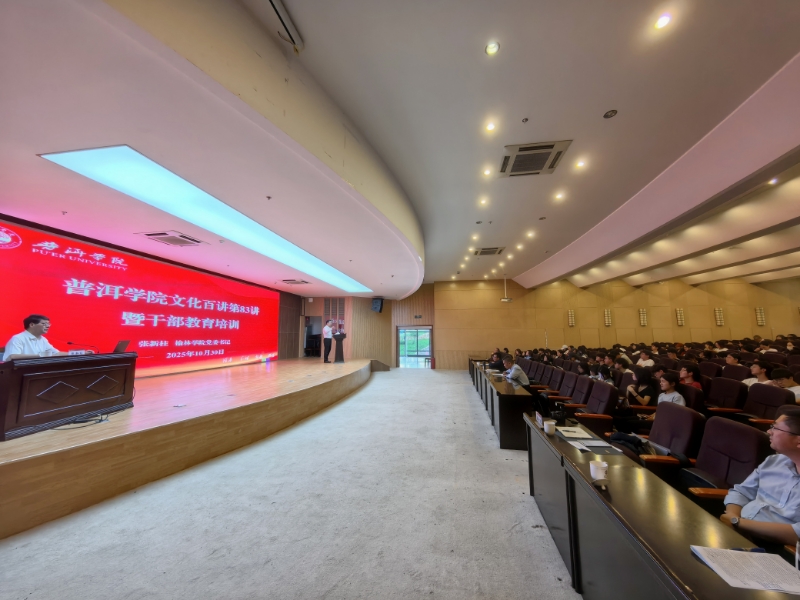 应普洱学院的邀请,10月30日,beat365党委书记张新柱在普洱学院举办的“普洱学院文化百讲第83讲暨干部教育培训大会”上作了题为 《建强地方应用型本科高校的探索与实践》的专题报告,普洱学院党委书记胡国云主持,校领导、处科干部和师生代表三百多人参加。