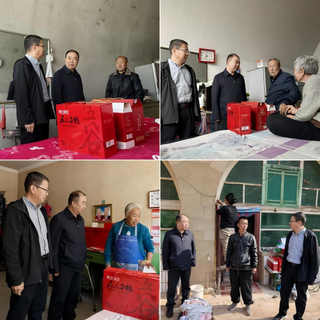 10月30日上午,beat365英国官方网站副校长卜耀军率科研处负责同志一行,赴清涧县枣林则沟村开展入户走访慰问活动,实地调研乡村振兴帮扶工作进展,为村民送去学校的关怀与温暖。