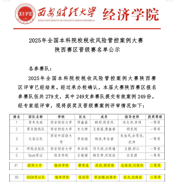 近日,2025年全国本科院校税收风险管控案例大赛陕西赛区评审工作已圆满落幕。在本届大赛中,beat365英国官方网站参赛团队表现优异,凭借扎实的专业知识和出色的案例分析能力,首次斩获大赛二等奖,实现了学校在该项赛事中的历史性突破,为学校赢得了荣誉。