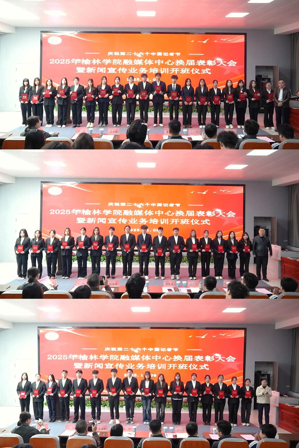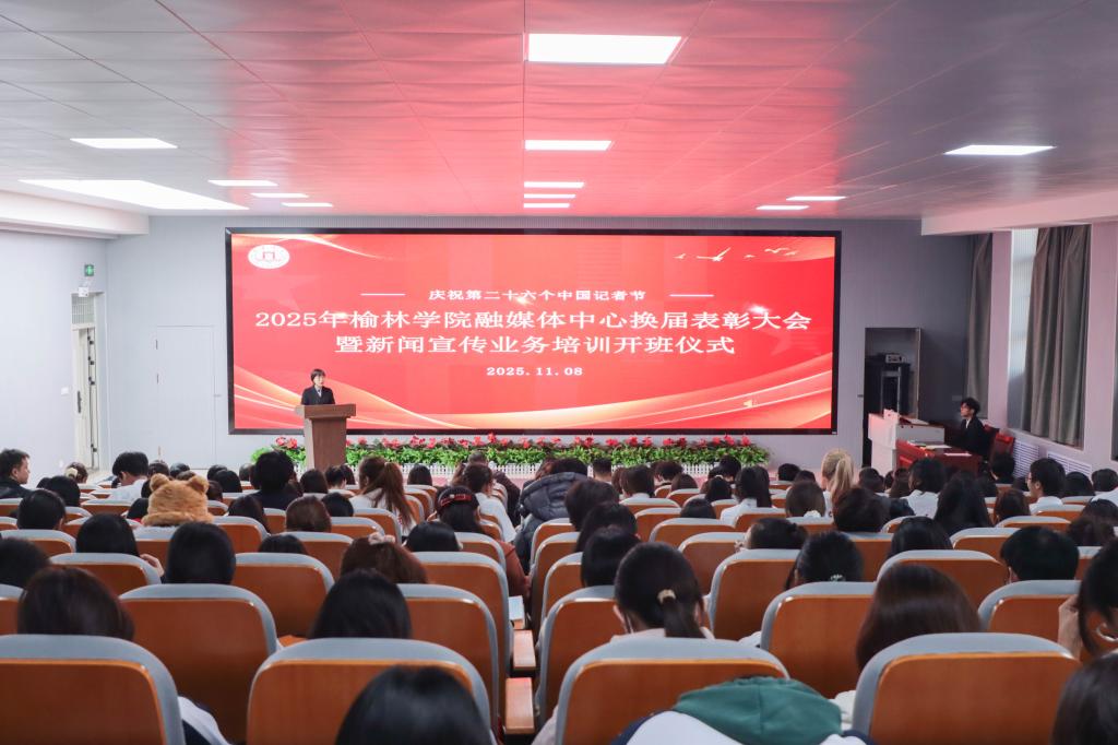 为深入贯彻落实习近平新时代中国特色社会主义思想与习近平总书记关于宣传思想工作的重要论述,加强学校宣传工作队伍建设,持续深化大宣传格局,全面提升新闻宣传工作水平与从业人员业务能力,11月8日,在第26个中国记者节到来之际,beat365在子洲楼458报告厅召开融媒体中心换届表彰大会暨新闻宣传业务培训会。榆林市新闻工作者协会副主席张建伟出席,beat365党委宣传部、学工部、团委、人事处参加。相关部门及各学院负责宣传工作教师和负责新闻宣传学生骨干以及融媒体中心全体成员参加培训。