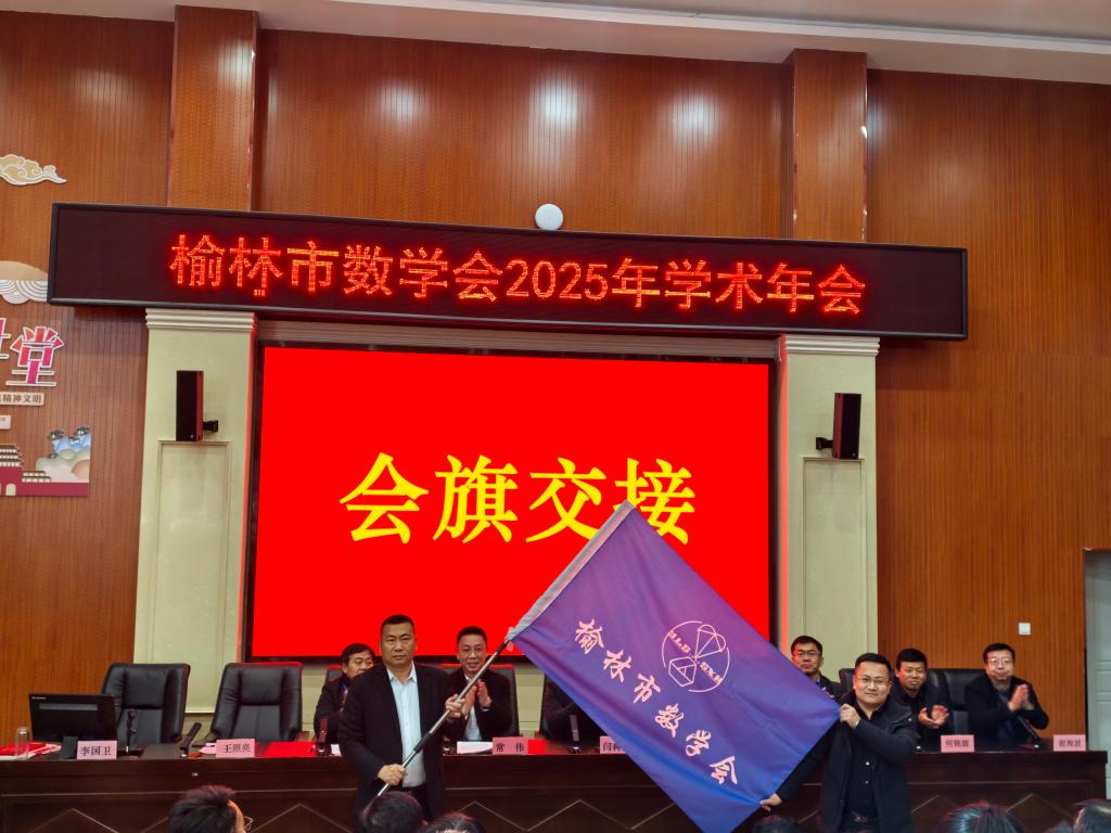 年会主题鲜明、内容丰富、组织严密、成果丰硕,是一次有高度、有深度、有温度的学术盛会,完成所有既定议程,年会顺利闭幕。榆林市数学会副理事长、榆林中学副校长常伟致闭幕词,学会理事长为本届年会的承办方榆林高新中学赠牌感谢,会议确定2026年榆林市数学会学术年会由神木市第四中学承办,两所学校完成会旗交接仪式。