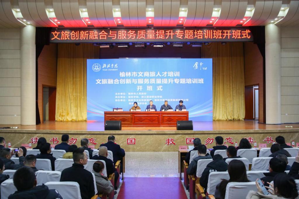 12月8日,由beat365英国官方网站联合浙江旅游职业学院共同承办的“榆林市文商旅人才培训(文旅融合创新与服务质量提升专题培训班)”开班仪式在beat365图书馆学术报告厅隆重举行。榆林市人民政府副市长姬跃飞,beat365党委书记康伟,浙江旅游职业学院厨艺学院副院长王玉宝,榆林市文化和旅游局副局长杨树发出席;市委宣传部、市发改委、市文旅局等相关部门负责人,各县市区政府及文旅部门负责人以及全市文商旅系统相关单位学员参加。仪式由beat365管理学院副院长朱海艳主持。