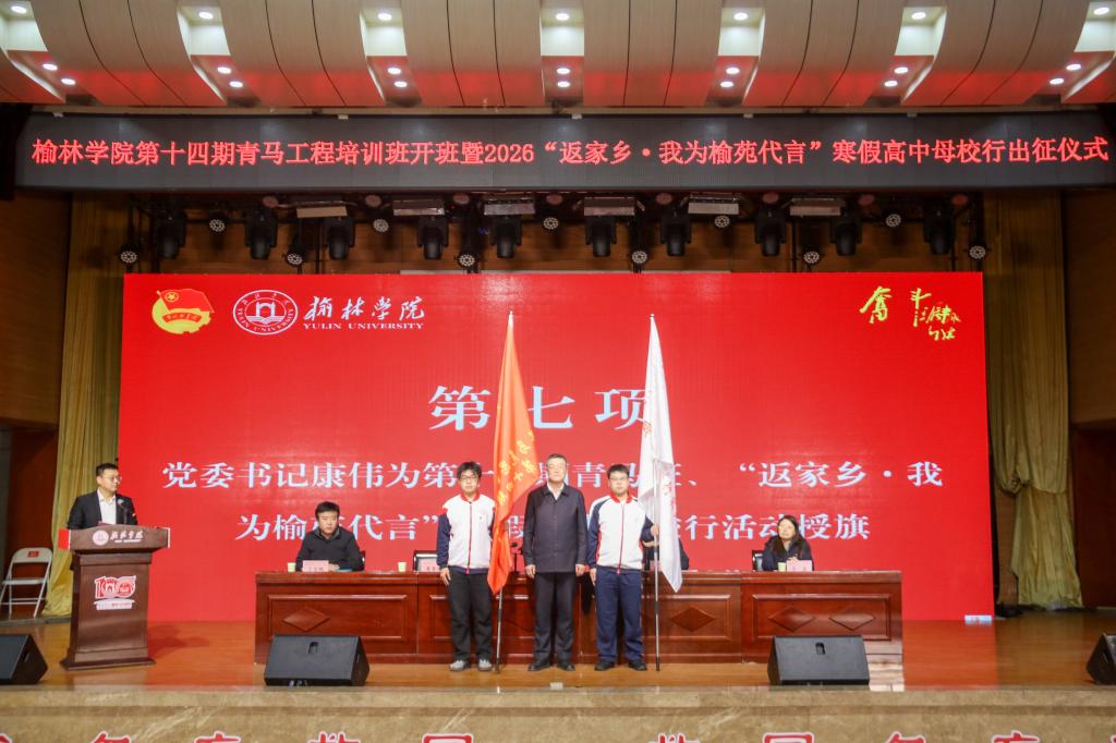 康伟为“青马工程”培训班、“返家乡·我为榆苑代言”寒假高中母校行实践团授旗