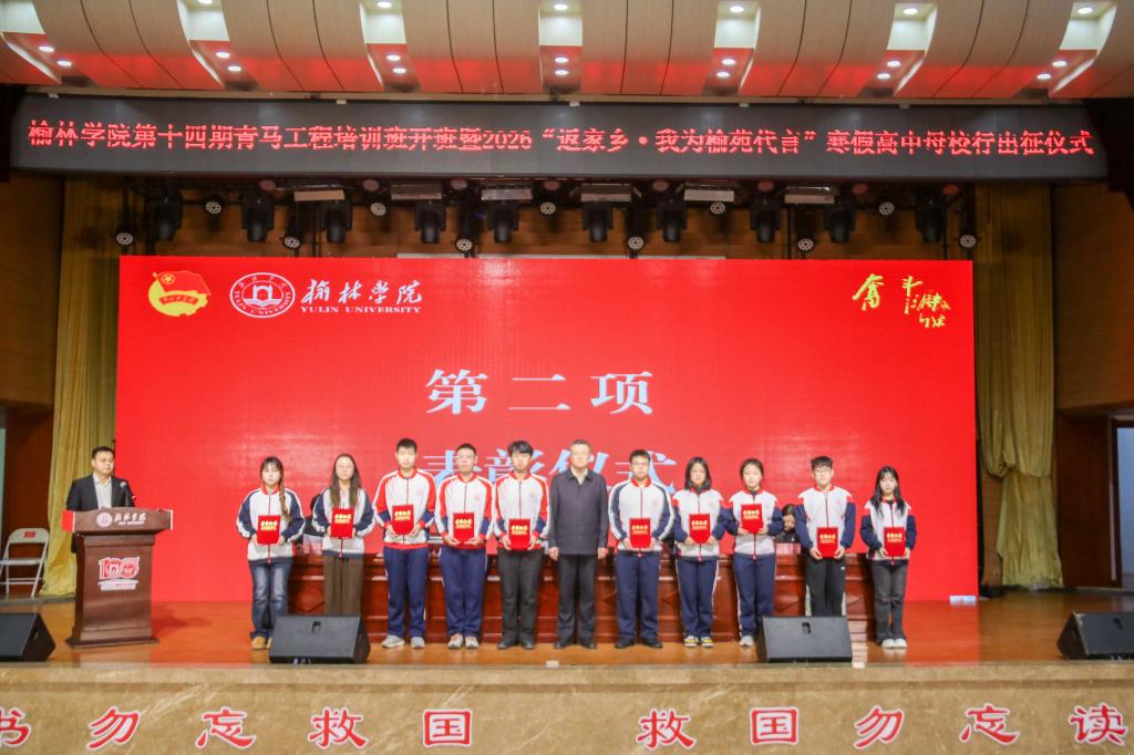 此次仪式的举行,是学校践行习近平新时代中国特色社会主义思想、落实“立德树人”使命的生动实践,标志着第十四期青马工程培训班正式启动、2026“返家乡·我为榆苑代言”寒假母校行实践活动全面展开。活动通过“青马工程”筑牢青年信仰、培育担当能力,借助“母校行”活动搭建情感纽带、展现学子风貌,在服务家乡与宣传学校中深化了学生的爱校荣校情怀与社会责任感,为学校人才培养和地方发展注入青春动能。下一步,学校将以此为新起点,持续完善“思想引领+实践锻炼”育人体系,深化青年马克思主义者培养模式,拓展校地协同与朋辈引航实践平台,引导青年学子在学习、实践与奉献中成长为时代新人,为建设特色鲜明的一流应用型大学、助力榆林高质量发展贡献青春力量。