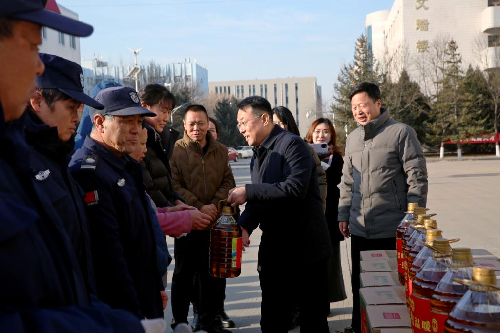 慰问组在校园内举行了集中慰问仪式。卜耀军代表学校党委、行政及全体教职工,对省总工会慰问组的到来表示热烈欢迎和诚挚感谢,并向寒假期间坚守岗位的一线教职员工致以崇高敬意。他勉励大家将工会“娘家人”的关怀厚爱,转化为干事创业的强大动力,为加快建成特色鲜明的一流应用型大学贡献更大力量。王永岗在仪式上阐述了工会“送温暖”品牌工作在服务大局、关爱职工方面的重要意义,并强调了教育工作者在实施科教兴国战略中的关键作用。他表示,工会组织将始终做广大职工最可信赖的“娘家人”,努力为大家排忧解难,支持大家建功立业。仪式上,慰问组与校领导共同向150余名来自后勤保障、安全保卫、管理服务等岗位的一线教职工代表发放了慰问礼包。集中慰问后,慰问组深入校园,专程看望了“陕西省先进工作者”屈雷老师及两名一线职工,与他们亲切交谈,详细询问其工作、生活及家庭实际情况,感谢他们的辛勤付出,叮嘱他们保重身体,并送上了慰问金和慰问品。这份“雪中送炭”的关怀,让受助职工深受感动,倍感温暖。