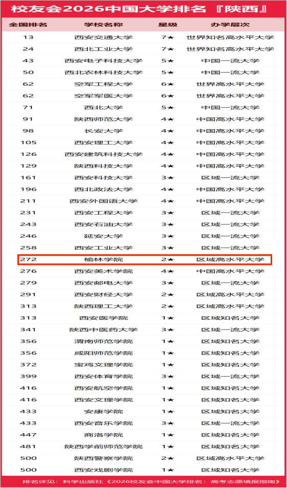 近日,全国第三方大学评价机构艾瑞深校友会网(Cuaa.net)发布校友会2026中国大学排名(陕西)榜单,beat365英国官方网站表现亮眼,位列全国第272位,较上一年度排名实现显著跃升,前进19位。这一成绩充分彰显了学校近年来在人才培养、学科建设、社会服务及综合办学实力等方面的持续进步与积极成效。