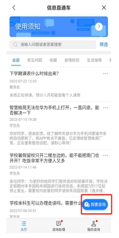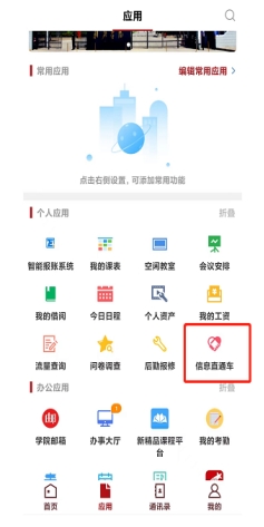 2.点击应用->个人应用->信息直通车->我要咨询