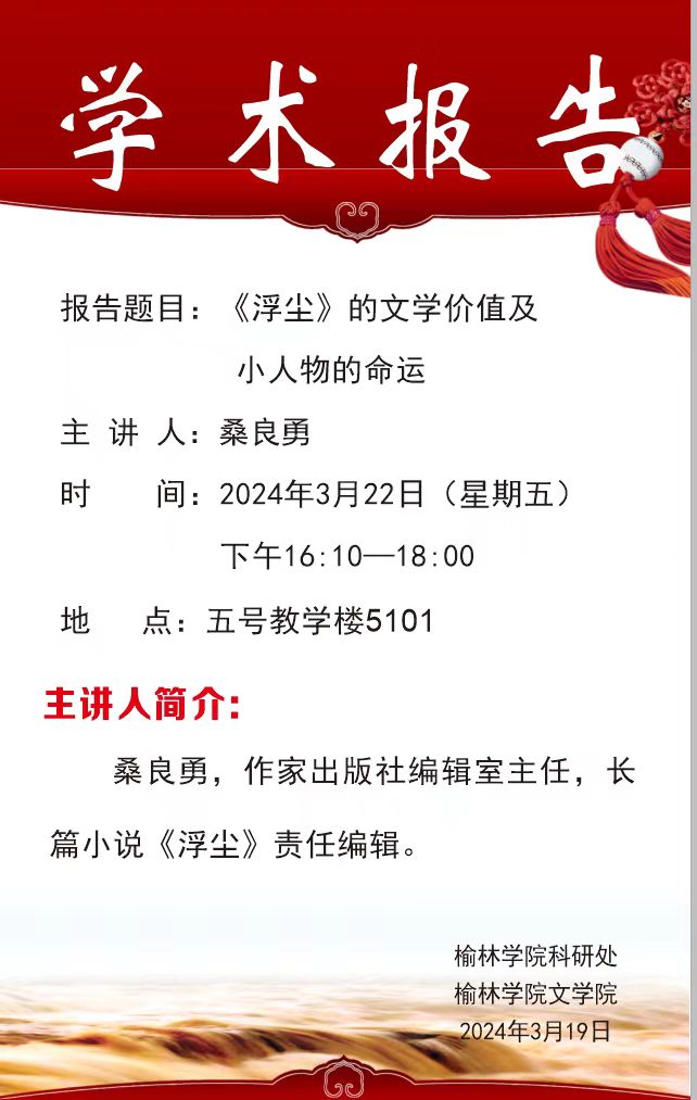 2024年学术交流活动(五)题目:《浮尘》的文学价值及小人物的命运