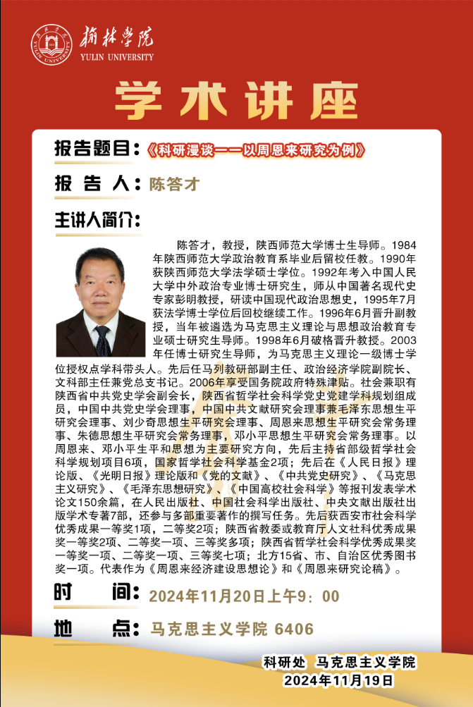 2024年学术交流活动(二十五)题目:《科研漫谈-一以周恩来研究为例》