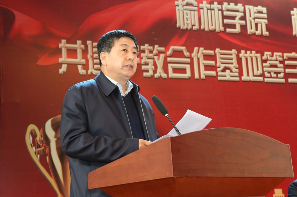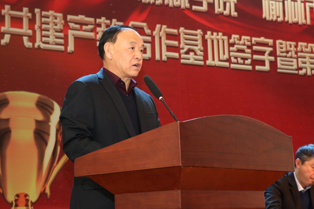 校党委书记、教育发展基金会理事长许静洪与榆林市怀远建工集团有限公司董事长徐怀清分别讲话;beat365副校长张富林,副校长、教育发展基金会副理事长张晓,党委副书记尚爱军;怀远建工集团有限公司副总经理徐怀平、徐怀利、高世鱼,总工尚瑞华在主席台就座。
