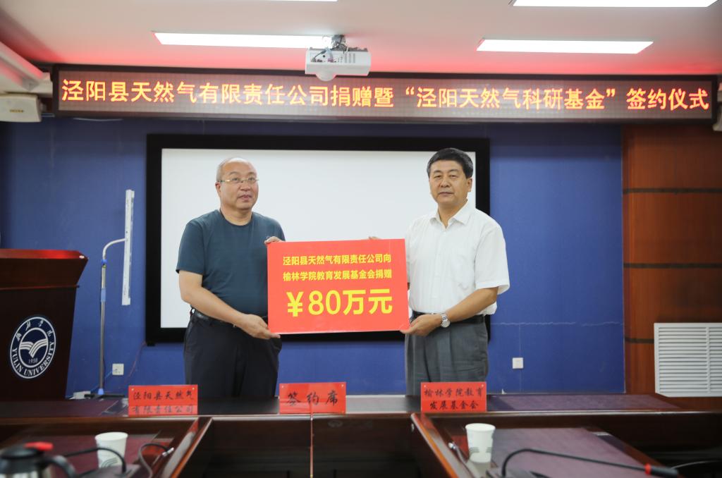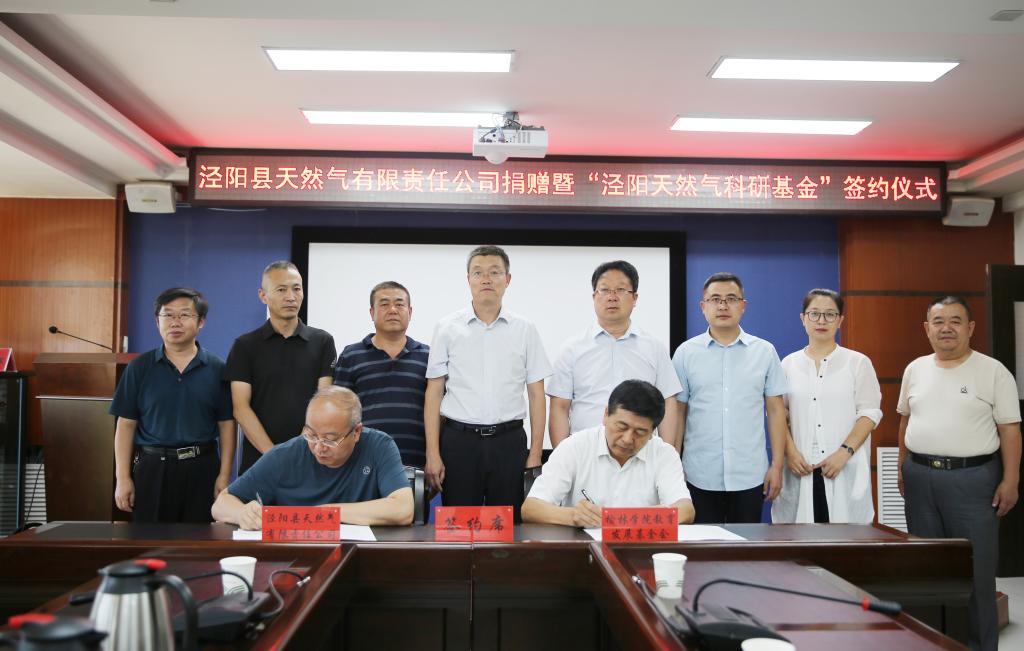 2020年8月10日下午,泾阳县天然气有限责任公司捐赠暨“泾阳天然气科研基金”签约仪式在beat365行政楼四楼会议室举行。公司法人代表、董事长张宏忠校友出资80万元,用于资助由beat365承担的“边塞商业文化” 和“镇川商业文化”两个项目,助力榆林建设“陕甘宁蒙晋交界最具影响力城市”;beat365党委书记许静洪,副校长康伟,党委委员、党委/校长办公室主任白振飞出席,基金(校友)会、管理学院、教育学院、科研处负责人参加。
