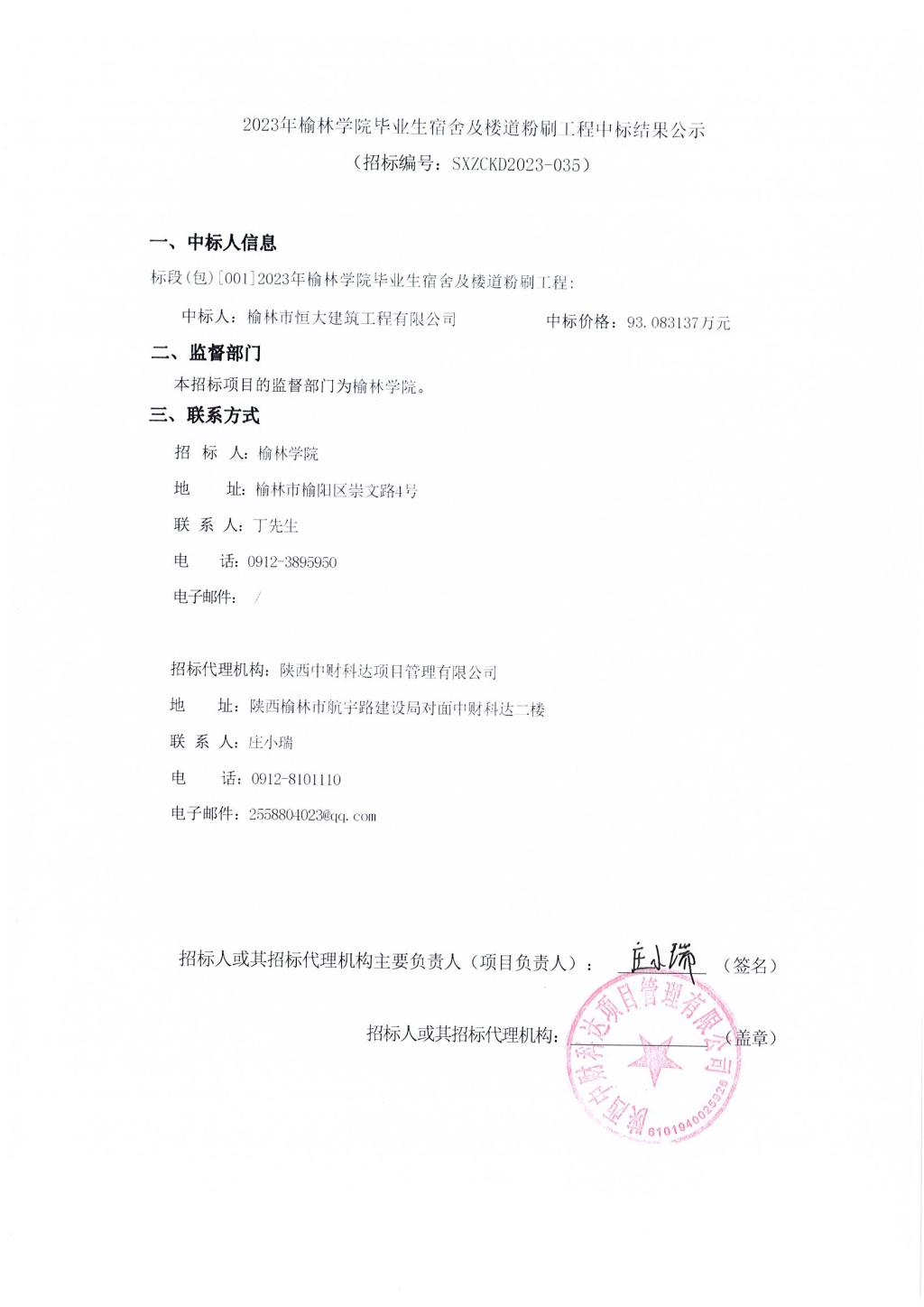 2023年beat365英国官方网站毕业生宿舍及楼道粉刷工程中标结果公示