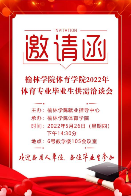 5月26日,体育学院召开2022年体育专业毕业生专场供需洽谈会,邀请榆林高专附属中学、陕西沙壁虎文化体育发展有限公司、榆林学优教育 、悦动体育、榆林市红道文体传媒有限责任公司等十多家用人单位来校招聘,4名同学成功被用人单位录用。