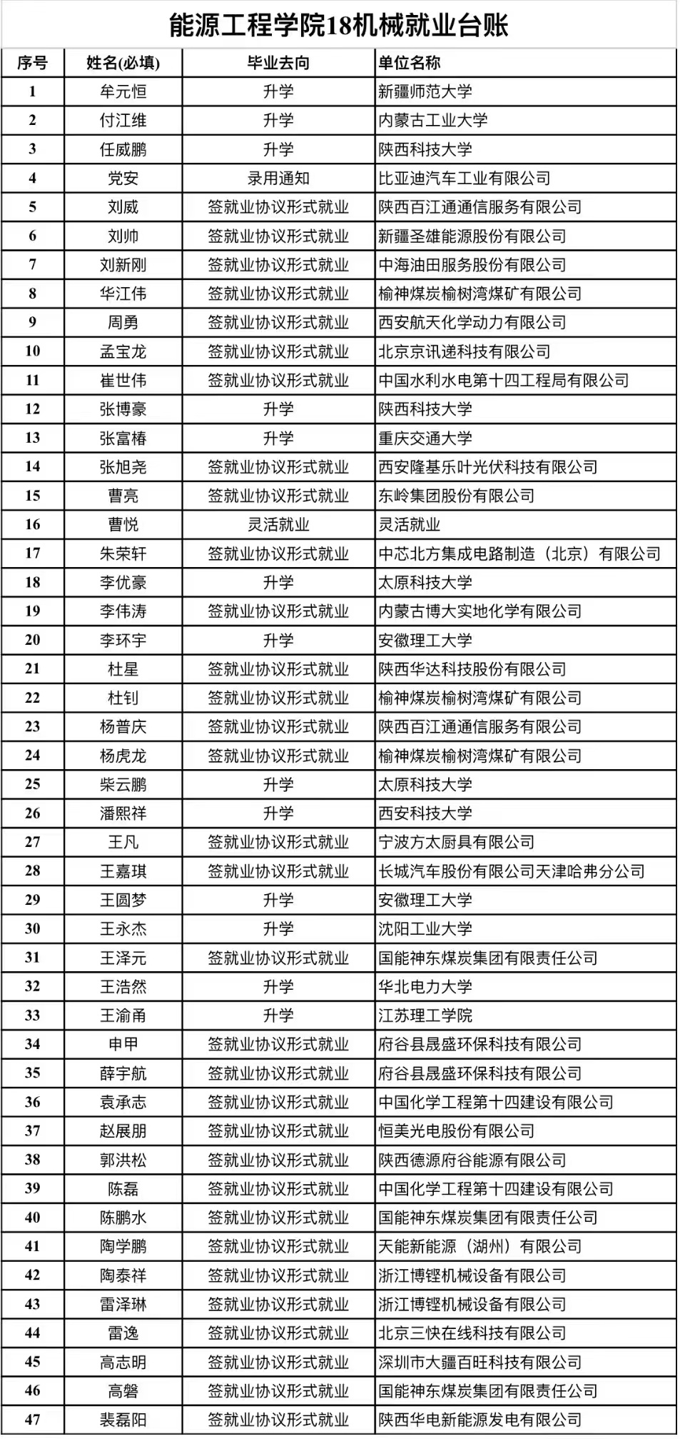 能源工程学院今年毕业生人数479人,是beat365毕业人数最多的学院。学院坚决扛起政治责任,强化工作协调,落实党政同责,充分发挥毕业指导教师、班主任和校友作用,想法设法拓宽就业渠道,分类指导做好就业帮扶,压实责任建立激励机制,形成了全院上下共同促就业的工作合力。目前学院已落实就业学生408人,落实就业率达85%。