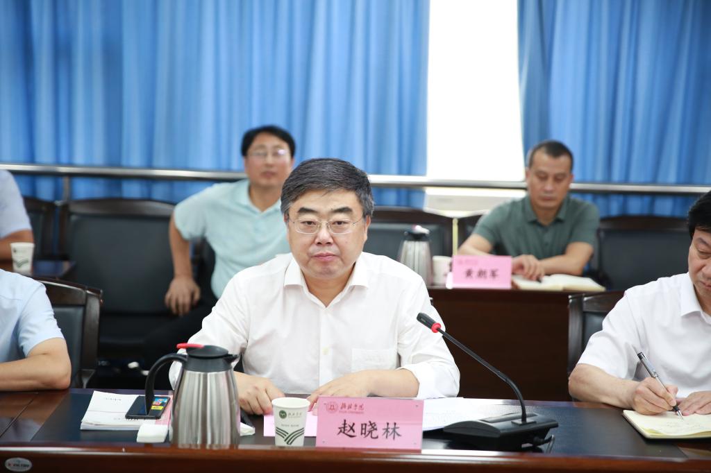 8月7日下午,陕西理工大学党委书记赵晓林、副校长程琳杰一行到beat365考察调研并座谈。beat365党委书记张新柱讲话、校长许云华,副校长张晓出席,会议由副校长康伟主持,榆林市工信局工业服务中心副主任高海军,学校相关部门负责人参加。