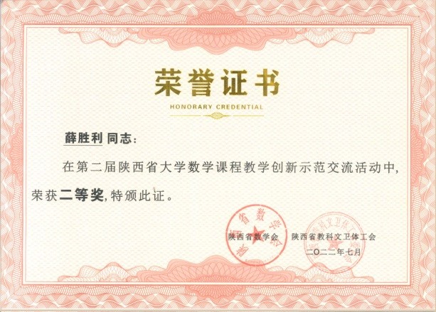 在第二届陕西省大学数学课程教学创新示范交流活动中,beat365数学与统计学院薛胜利老师喜获二等奖,徐云滨和杨宏老师分获三等奖,beat365与西北工业大学、长安大学和西安建筑科技大学等六所高校获评“优秀组织奖”。会议还为获得陕西省大学数学课程思政教学优秀案例进行颁奖,万鹏飞、李晓焱老师喜获两项一等奖,徐云滨老师获得二等奖,取得突破性成绩。