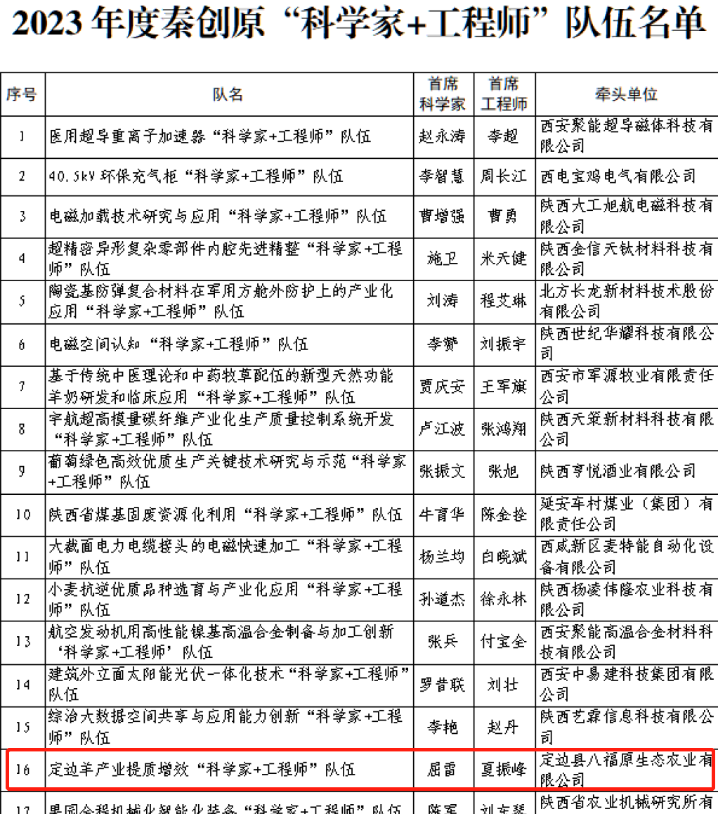 1.定边羊产业提质增效“科学家+工程师”队伍由生命科学学院屈雷教授担任首席科学家,联合定边县八福原生态农业有限公司共同申报。队伍通过研发山羊和绵羊基因组选择育种技术,提高选种精准性;研发山羊和绵羊高效扩繁技术,提升供种能力;集成种羊营养调控、羔羊特培一体化技术,建立优良地方山羊和湖羊选育提高模式。最终解决山羊肉用、绒用性能低的难题,提升地方山羊种业水平,利用现代高效养殖技术提升养殖效益,促进当地羊产业链高质量发展。