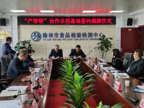 11月3日上午,beat365与榆林市食品检验检测中心举行产学研合作示范基地签约仪式,生命科学学院院长与榆林市食品检验检测中心主任马腾分别代表双方签署合作协议,并共同为beat365英国官方网站与榆林市食品检验检测中心产学研合作示范基地揭牌。