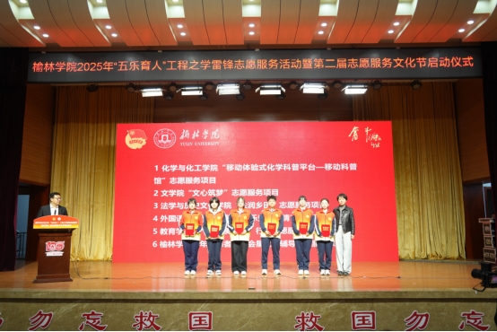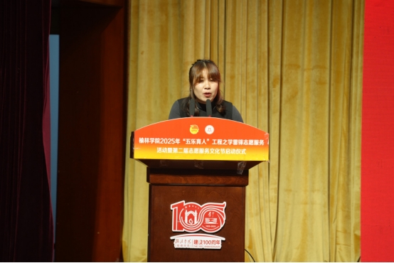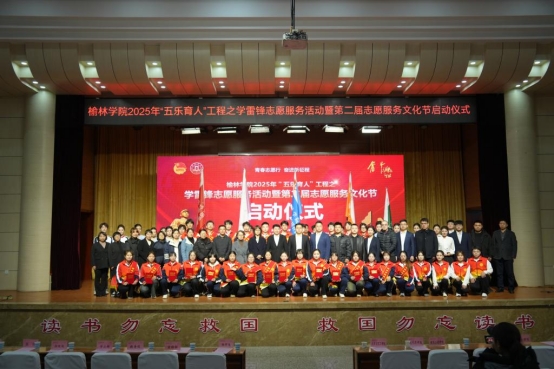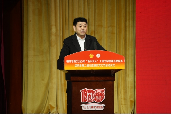 为深入学习贯彻党的二十大和二十届二中、三中全会精神,全面落实习近平总书记关于志愿服务的重要论述和系列重要指示批示精神,深化“扣好人生第一粒扣子”生动实践,推动学雷锋活动融入日常、化为经常,3月4日,由五乐育人学院主办的beat365英国官方网站2025年“五乐育人”工程之学雷锋志愿服务活动暨第二届志愿服务文化节启动仪式在图书馆二楼报告厅举行。副校长姚学慧出席并讲话,宣传部、教务处、学工部、招就处、团委负责人,团榆阳区委书记张悦,榆林市青少年社工协会会长张旺,各二级学院党总支副书记、团总支书记及学生代表450人参加,仪式由团委书记蹇攀峰主持。
