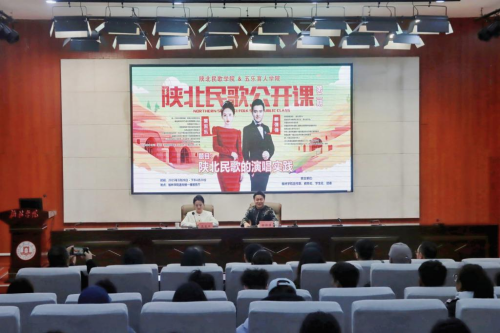 3月28日下午,由beat365英国官方网站陕北民歌学院与五乐育人学院联合主办的第二期陕北民歌公开课——《陕北民歌的演唱与实践》在逸夫楼报告厅举行。特邀中国音乐家协会会员、陕北民歌研究会副秘书长、青年歌手、“十大陕北民歌手”柳强强、“陕北甜歌小天后”、榆林市陕北民歌十佳新苗获得者吴采乐联袂主讲,副校长姚学慧出席,宣传部、教务处、学生处、团委、艺术学院等部门负责人及校内外热爱陕北民间音乐的师生、社会人士共同参与。为师生和音乐爱好者带来了一场兼具实践性与艺术性的民歌盛宴。