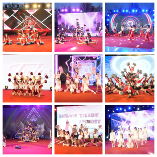 活动现场气氛热烈,人潮涌动。各学院啦啦操代表队轮番登场,以独特风格演绎运动之美:体育学院以刚柔并济的舞姿诠释力与美的完美结合;艺术学院凭借高难度的托举技巧和整齐划一的动作展现专业水准;教育学院新颖独特的表演形式引发全场共鸣;研究生院代表队将舞蹈的优雅韵律与啦啦操的动感活力巧妙结合;外国语学院在节奏把控和舞台表现上独具特色;其他学院代表队通过富有创意的队形变换和张力十足的动作编排,将啦啦操的激情与活力展现得淋漓尽致。比赛高潮迭起,充分展现了当代大学生蓬勃向上的精神风貌和青春风采。