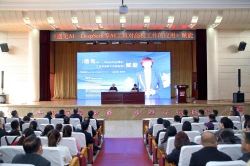 3月16日下午,赵宁老师为beat365管理干部作题为“《遇见AI——DeepSeek等AI工具对高校工作的应用》赋能”的报告。校党委副书记闫龙出席并主持,全校各级管理干部近400余人参加。