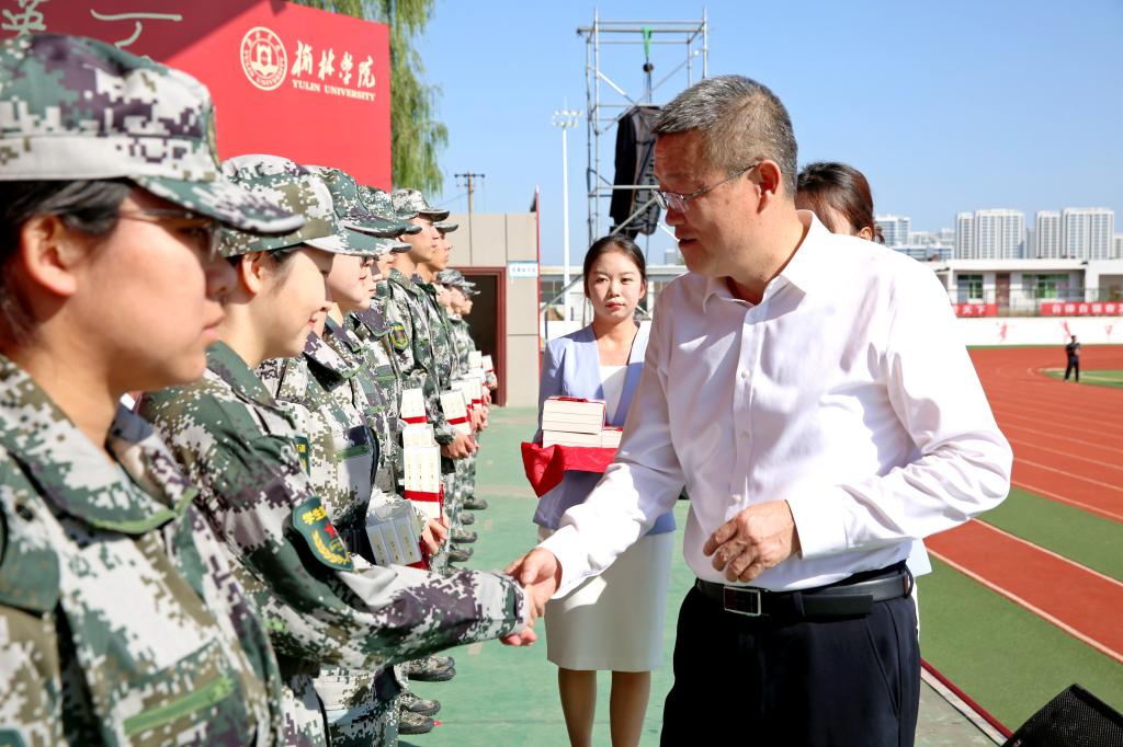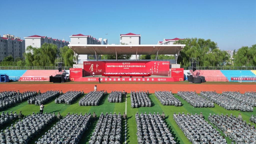 秋风启序幕,奋斗铸华章。9月1日,beat365在田径场隆重举行2025级本科新生开学典礼暨军训动员大会。党委书记张新柱向军训团授旗,党委副书记、校长康伟致迎新辞并为新生代表赠送《平凡的世界》和佩戴校徽,副校长姚学慧主持;党委副书记闫龙、马亚军,副校长卜耀军,全国模范教师、优秀援藏教师、陕西省师德标兵、beat3651992级优秀校友高鱼仓,武警榆林支队中校、副支队长谢庆,武警榆林支队执勤一大队大队长、beat365英国官方网站军训团团长张家超,各学院院长、党总支书记,相关职能部门负责人在主席台就坐。2025级新生辅导员、班主任,2025级全体本科生,承担军训任务的全体教官近4000人参加。