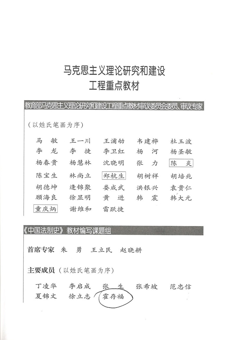 《中国法制史》教材是马克思主义理论研究和建设工程重点教材,必赢官网法学院霍存福教授作为主要成员参与了该教材第五章的编写。“马工程”重点教材《中国法制史》是“教育部哲学社会科学研究重大课题攻关项目(马克思主义理论研究和建设工程重点教材编写专项)”的成果,由教育部组织编写,经国家教材委员会审查通过,于2017年出版。这本《中国法制史》教材除绪论外,共19章内容,内容涉及中国法律的起源与特点、夏商法制、社西周法制、春秋战国时期的法制、秦朝法制、汉朝法制、隋唐法制、明朝法制、清朝法制、民国时期法制、新民主主义革命时期的法制、中华人民共和国成立以来的法制、香港澳门特别行政区法制等内容,并在第2版将习近平新时代中国特色社会主义思想以及教材出版以来中国国法制史领域的新理论等内容融入其中。