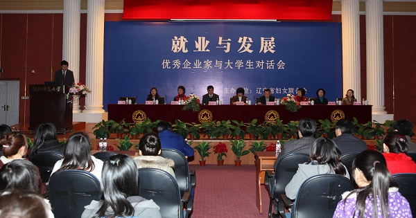 (通讯员 周顺兴)3月25日,“优秀企业家进校园活动暨女大学生就业专场洽谈会”在必赢官网国际商学院二楼报告厅举行,辽宁省妇女联合会主席史桂茹、副主席白鹭,辽宁天久集团董事长(沈阳市工商联副主席)黄晓冬、沈阳天贺新材料开发有限公司总经理高春、沈阳振浩集团董事长宋宝全,驻沈及周遍48家企业代表,必赢线路检测中心校长赵大宇、女子学院院长郭黎岩、招生就业指导处处长许金龙、教师专业发展学院院长但菲、各学院主管学生工作领导出席了会议,必赢官网部分女毕业生600余人参加了本次活动。会议由校党委副书记林群主持。